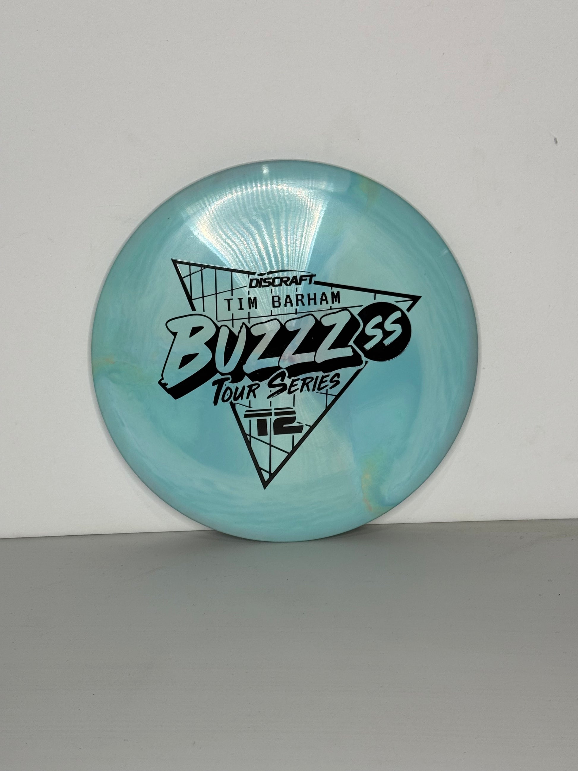 The Discraft ESP Buzzz SS Tim Barham TS - Mid Range Driver is a top-of-the-line mid-range disc that offers expert-level precision and control on the course. Made with ESP plastic, it is durable and reliable for consistent throws. The Buzzz SS design allows for longer distances and easier handling, making it an essential tool for any serious disc golfer.