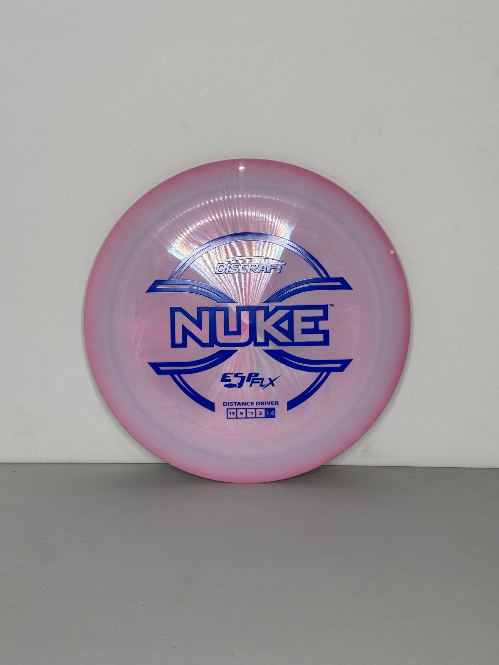 Introducing the Discraft ESPFLX Nuke - a top-performing distance driver designed for ultimate control and accuracy on the course. With its innovative ESPFLX technology, this disc offers unmatched stability and flight consistency, perfect for players of all levels. Dominate the game and achieve your best throws with the ESPFLX Nuke.