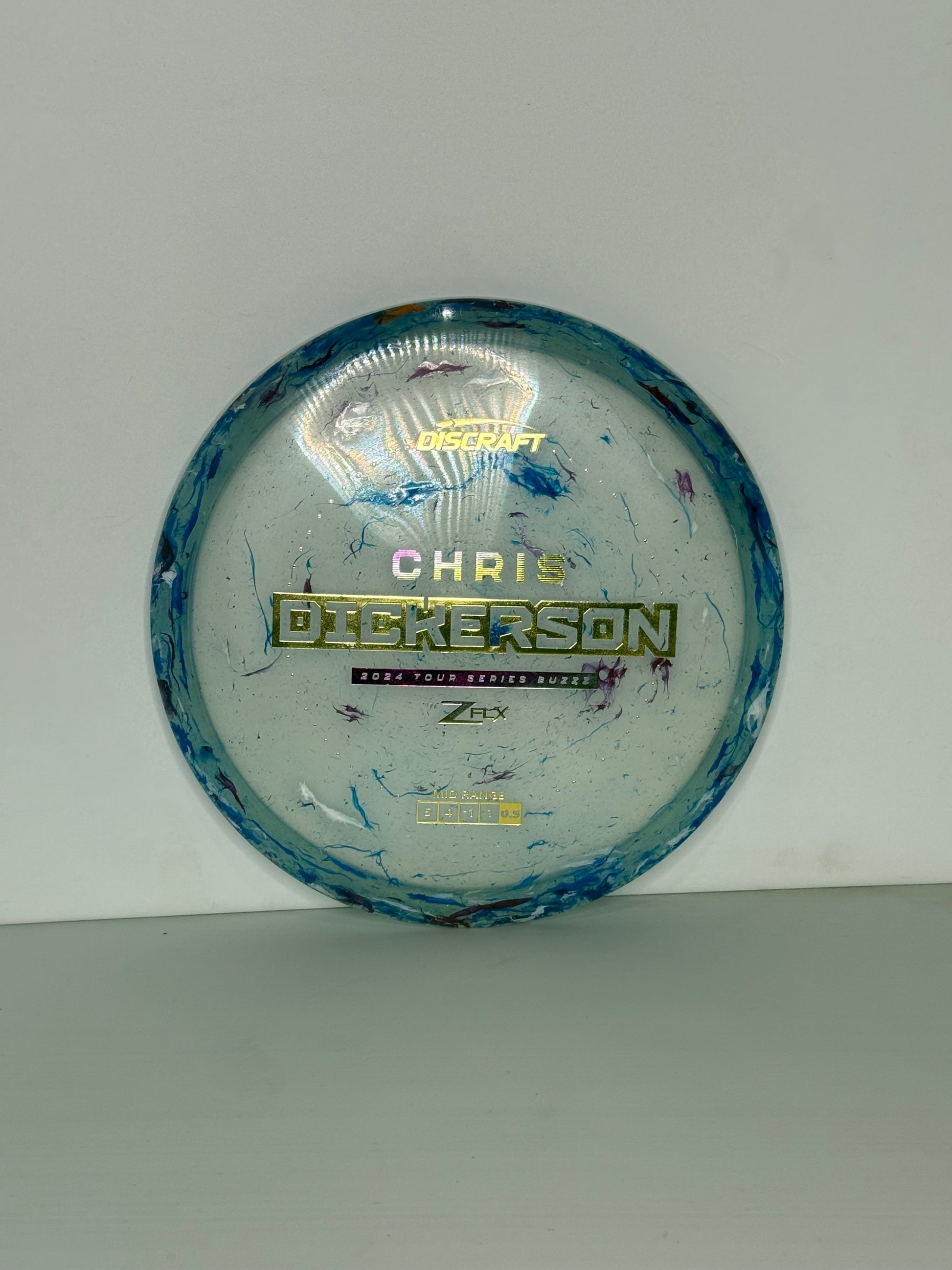 The Jawbreaker ZFLX Buzzz Chris Dickerson 2024 Tour Series - Mid Range Driver features Discraft's jawbreaker ZFLX material for enhanced durability and performance. Its expertly crafted design and cutting-edge materials provide precise control and increased distance on the course, making it a top choice for serious players.