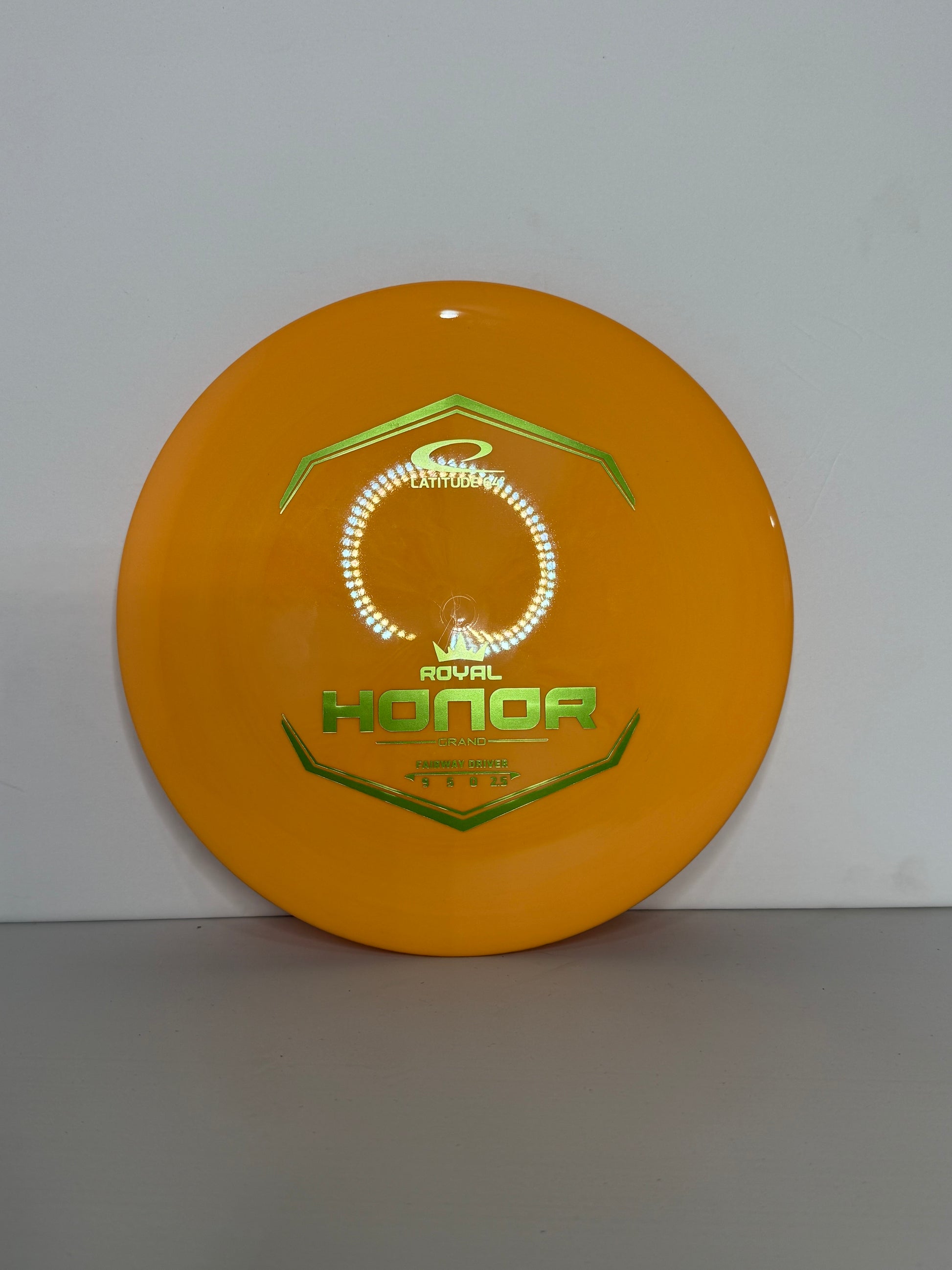 Introducing the Latitude 64 Royal Honor, a top-of-the-line fairway driver. Crafted with precision engineering and designed for superior performance, the Royal Honor offers a powerful drive and impressive accuracy on the course. With a sleek and durable build, experience the next level of disc golf with Royal Honor.